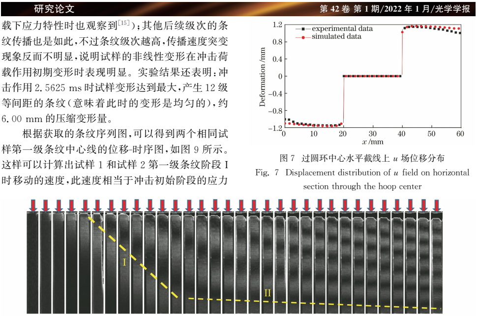 在冲击实验中,通过时序云纹条纹图(如Fig. 8)观察到应力波在聚氨酯棒中的传播过程,并计算出应力波速(274.89 m/s)与动态弹性模量(83.65 MPa),显著高于静态模量(27.00 MPa)。这一发现不仅证实了材料的应变率硬化效应,也为动态力学理论提供了实验依据。
